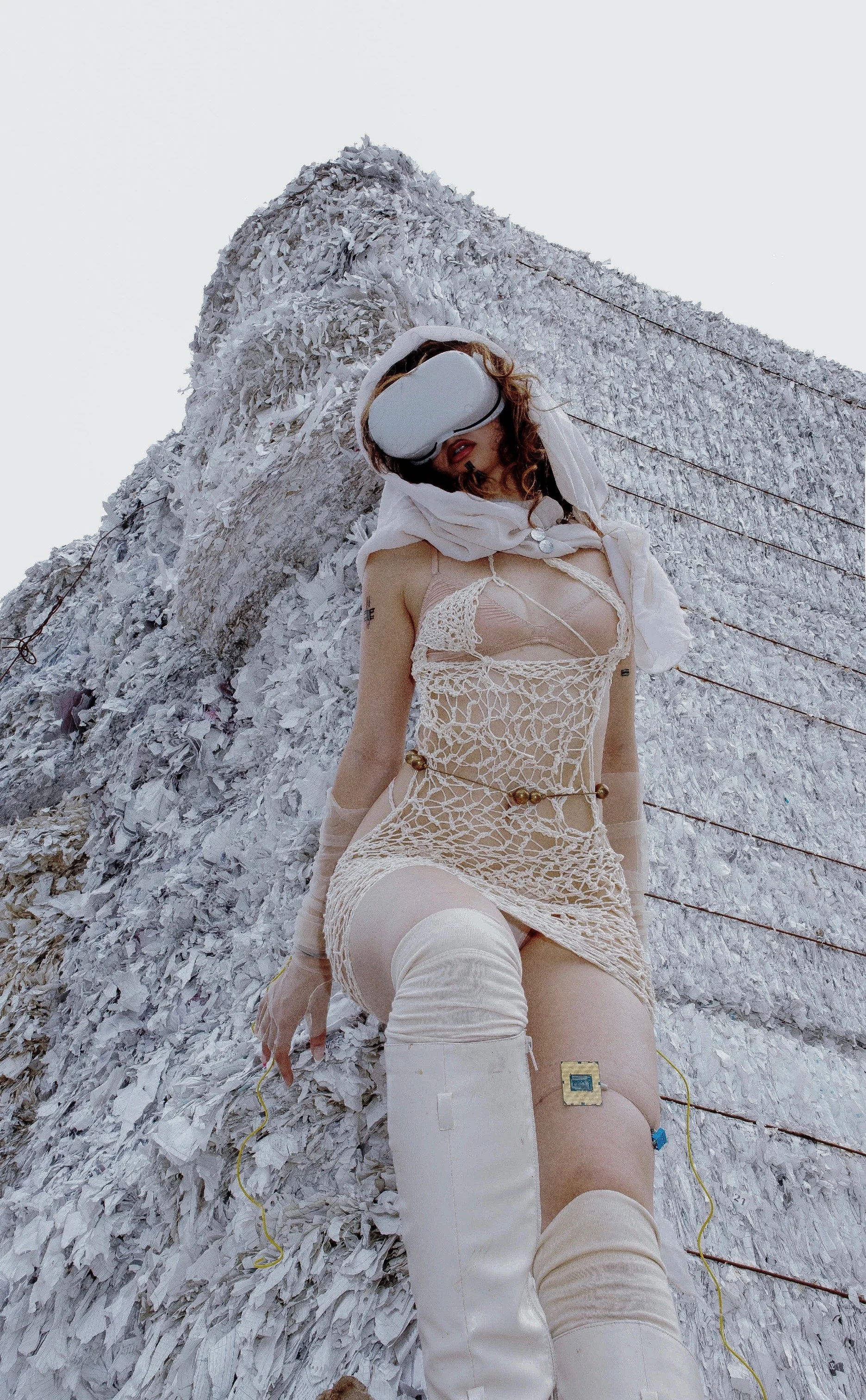 I had in mind Byung-Chul Han’s philosophy of “Achievement society, and the rise of narcissism” to materialize a Wasteland World with the only inhabitant being a dreamy and disconnected digital nomad. Playing on concepts of cyber connectivity, and digital diaspora.